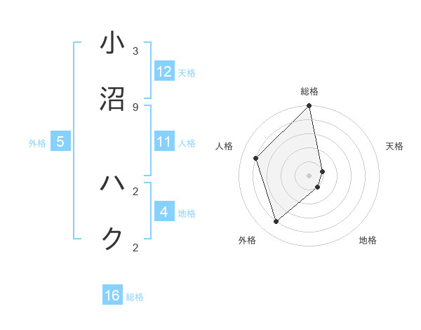 小沼 ハクさんを姓名の画数から五運を鑑定