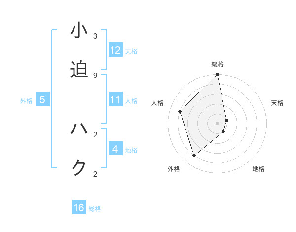 小迫 ハクさんを姓名の画数から五運を鑑定