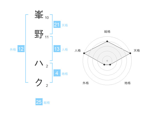 峯野 ハクさんの総格は25画の4点!