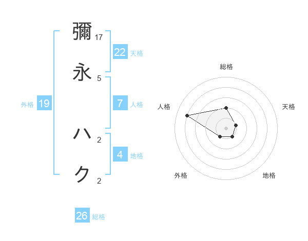 彌永 ハクさんを姓名の画数から五運を鑑定