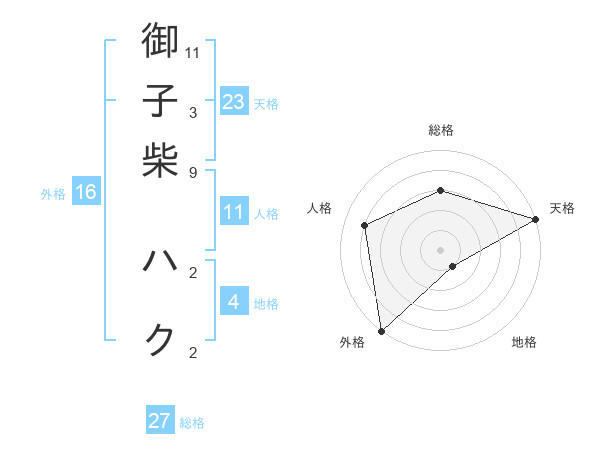御子柴 ハクさんを姓名の画数から五運を鑑定