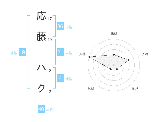 応藤 ハクさんを姓名の画数から五運を鑑定