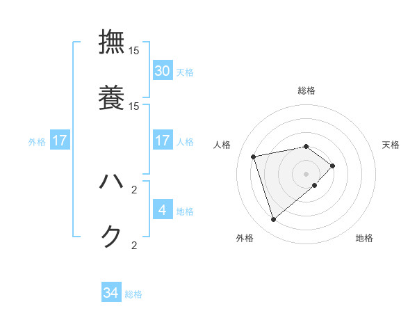 撫養 ハクさんの外格は17画の4点!