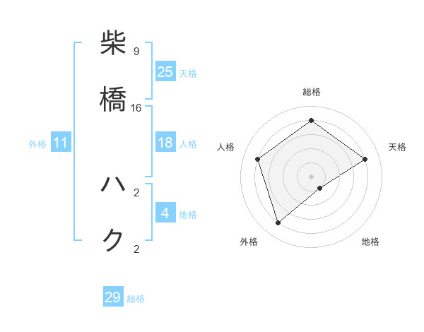 柴橋 ハクさんの総格は29画の4点!