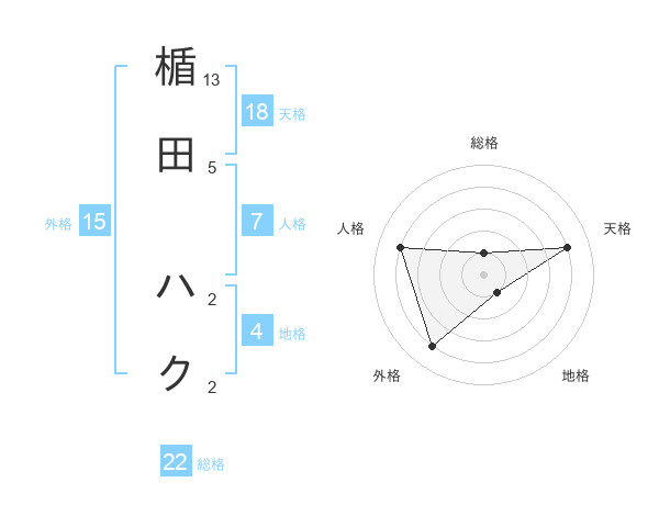楯田 ハクさんの総格は22画の1点!