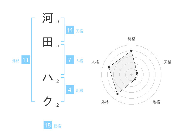 河田 ハクさんの総格は18画の4点!