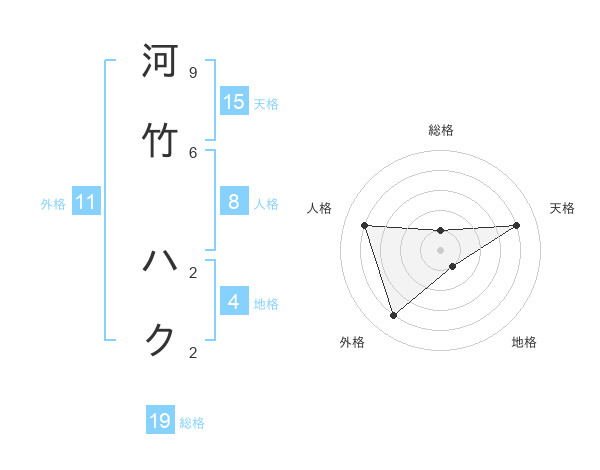 河竹 ハクさんの天格は15画の4点!