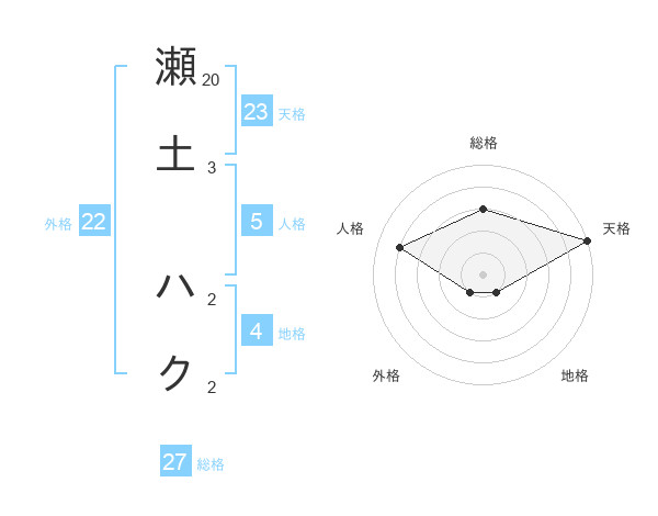 瀬土 ハクさんを姓名の画数から五運を鑑定