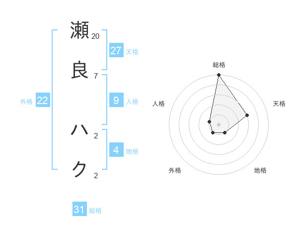 瀬良 ハクさんの総格は31画の5点!