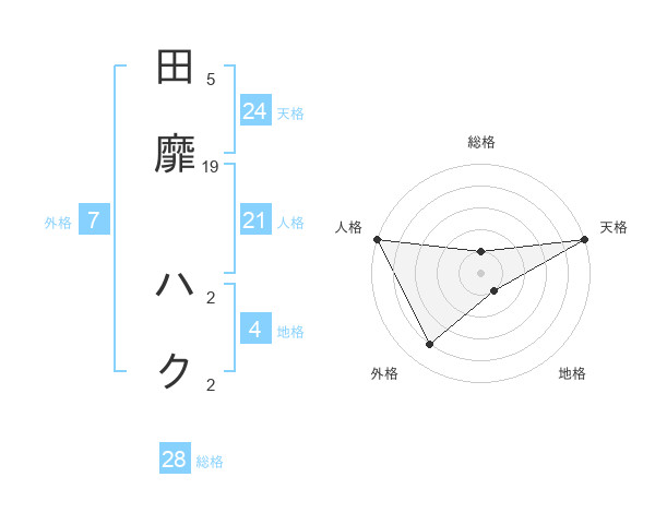 田靡 ハクさんの外格は7画の4点!
