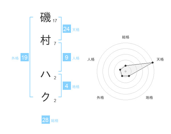 磯村 ハクさんを姓名の画数から五運を鑑定