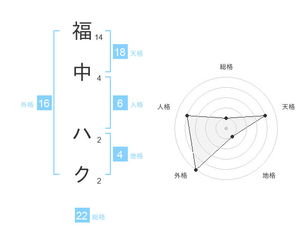 福中 ハクさんの総格は22画の1点!