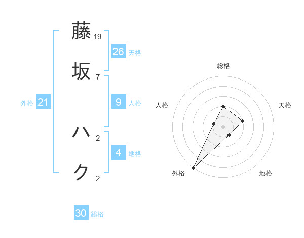 藤坂 ハクさんを姓名の画数から五運を鑑定
