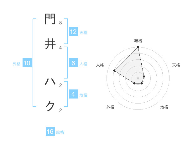 門井 ハクさんの総格は16画の5点!