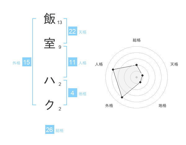 飯室 ハクさんを姓名の画数から五運を鑑定