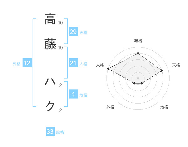 高藤 ハクさんの総格は33画の4点!