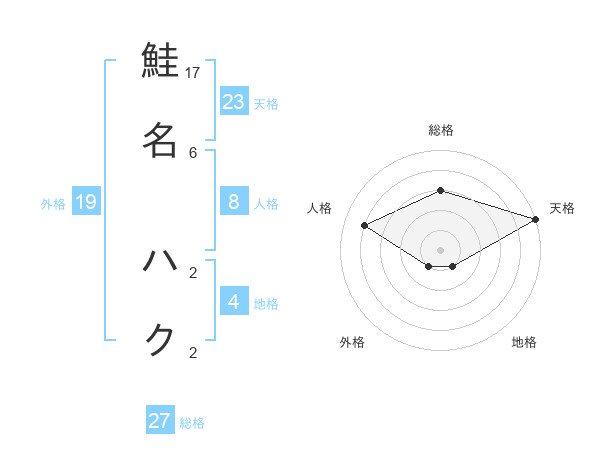 鮭名 ハクさんを姓名の画数から五運を鑑定