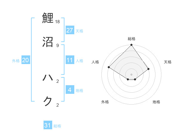 鯉沼 ハクさんの総格は31画の5点!