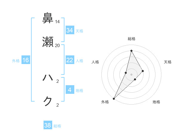 鼻瀬 ハクさんを姓名の画数から五運を鑑定