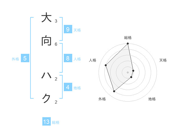 大向 ハクさんの総格は13画の5点!