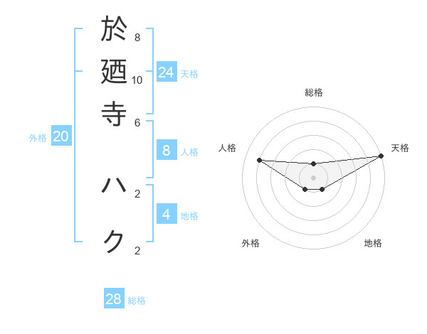 於廼寺 ハクさんの天格は24画の5点!
