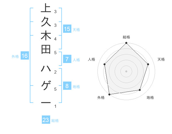 上久木田 ハゲーさんを姓名の画数から五運を鑑定