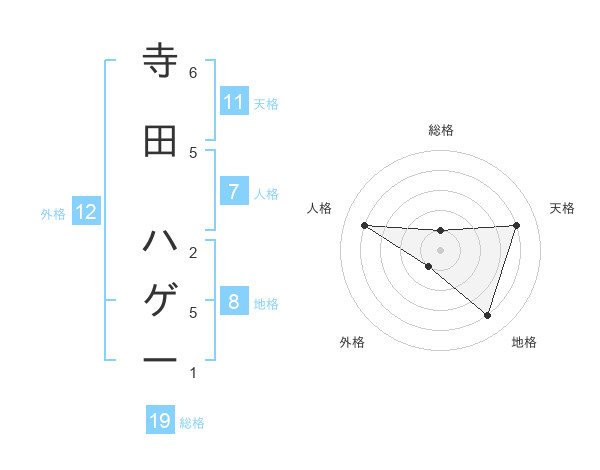 寺田 ハゲーさんを姓名の画数から五運を鑑定