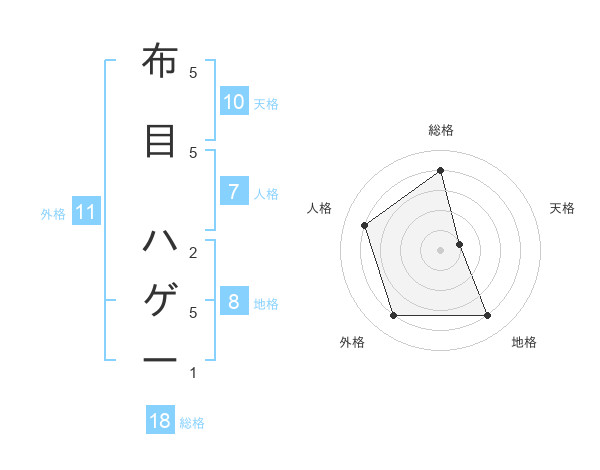 布目 ハゲーさんを姓名の画数から五運を鑑定