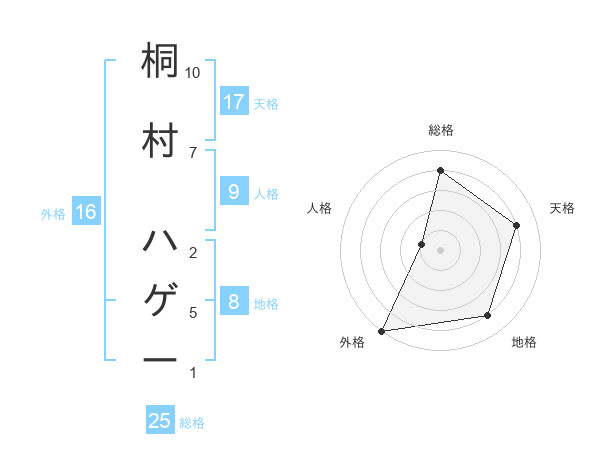 桐村 ハゲーさんを姓名の画数から五運を鑑定