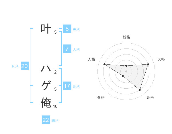 叶 ハゲ俺さんの総格は22画の1点!