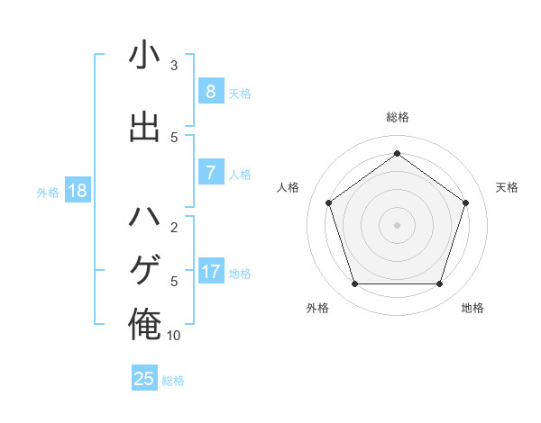 小出 ハゲ俺さんの総格は25画の4点!