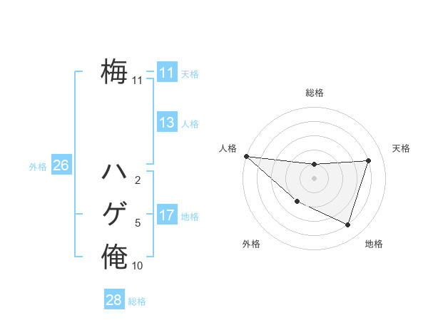 梅 ハゲ俺さんの地格は17画の4点!