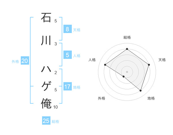 石川 ハゲ俺さんを姓名の画数から五運を鑑定
