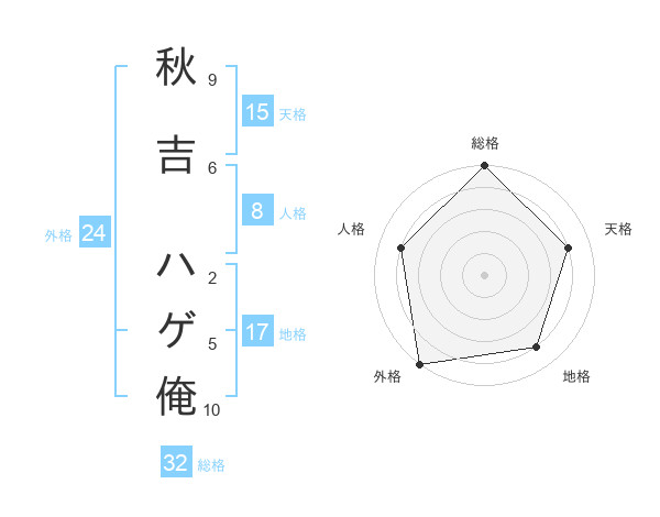 秋吉 ハゲ俺さんの外格は24画の5点!