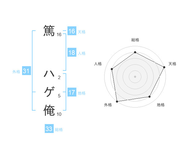 篤 ハゲ俺さんの天格は16画の5点!