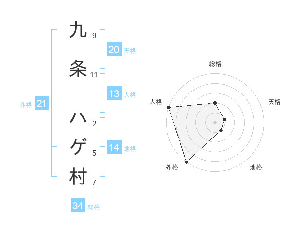 九条 ハゲ村さんの外格は21画の5点!
