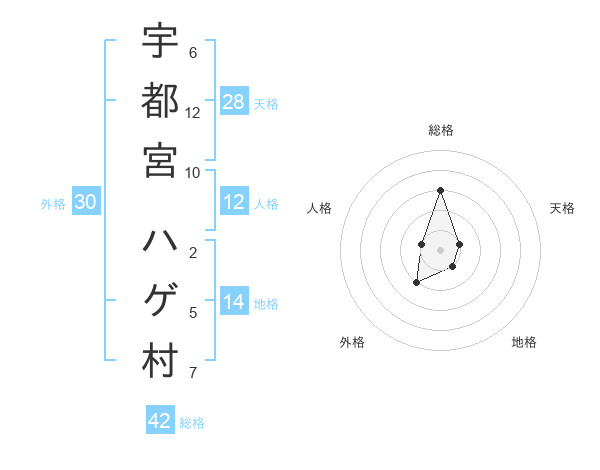宇都宮 ハゲ村さんの総格は42画の3点!