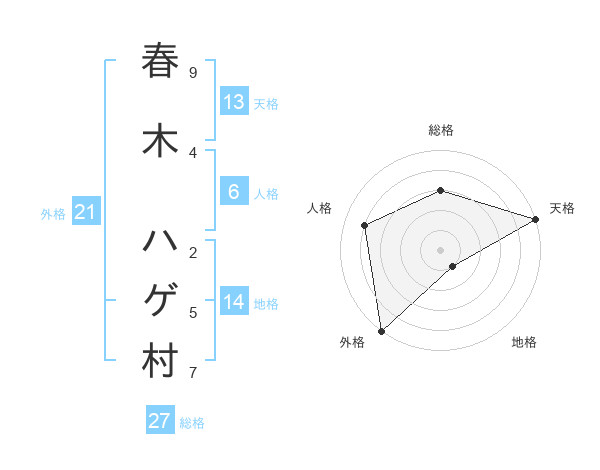 春木 ハゲ村さんを姓名の画数から五運を鑑定