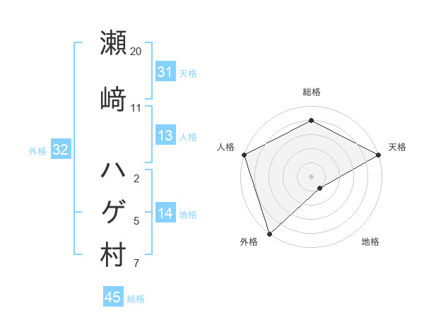 瀬﨑 ハゲ村さんの総格は45画の4点