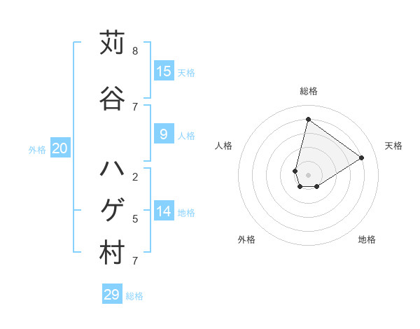 苅谷 ハゲ村さんを姓名の画数から五運を鑑定