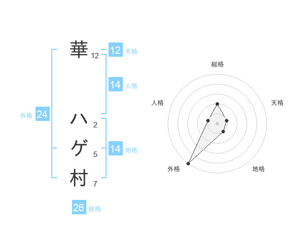 華 ハゲ村さんの外格は24画の5点!