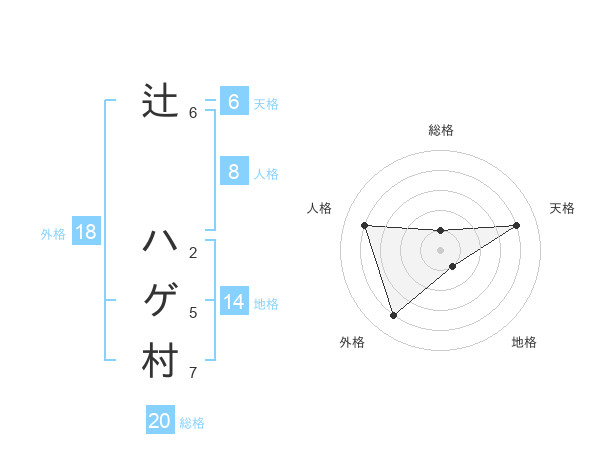 辻 ハゲ村さんを姓名の画数から五運を鑑定