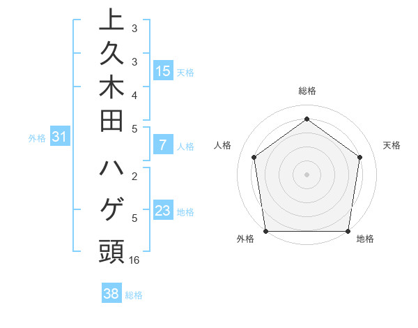 上久木田 ハゲ頭さんの天格は15画の4点!