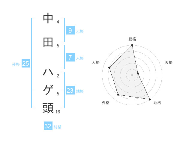 中田 ハゲ頭さんの総格は32画の5点!