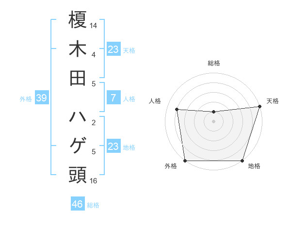 榎木田 ハゲ頭さんの天格は23画の5点!
