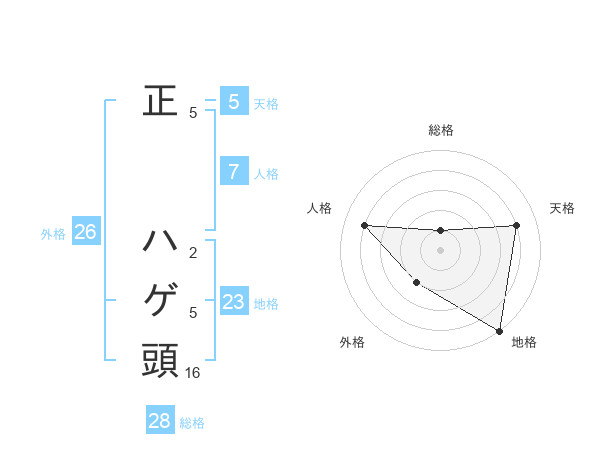 正 ハゲ頭さんの総格は28画の1点!