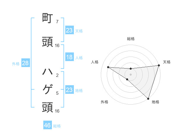 町頭 ハゲ頭さんの天格は23画の5点!