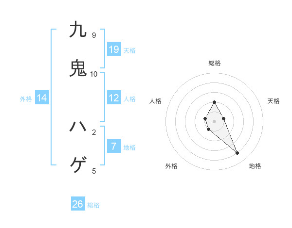 九鬼 ハゲさんを姓名の画数から五運を鑑定