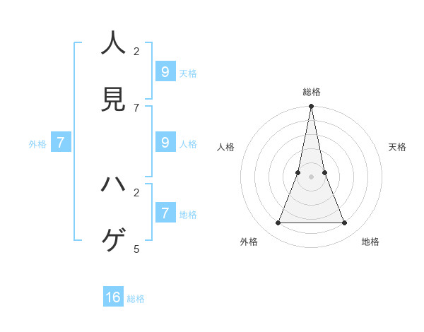 人見 ハゲさんの総格は16画の5点!