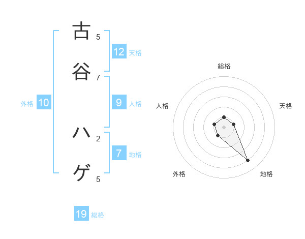 古谷 ハゲさんを姓名の画数から五運を鑑定